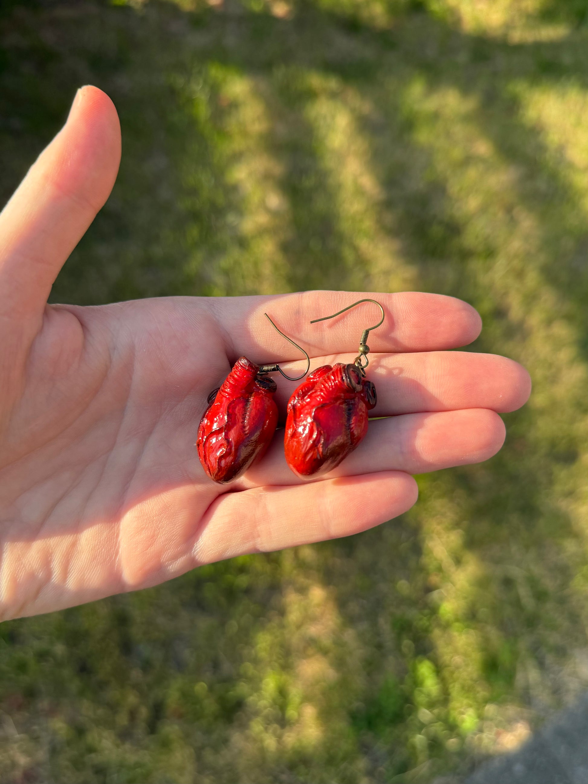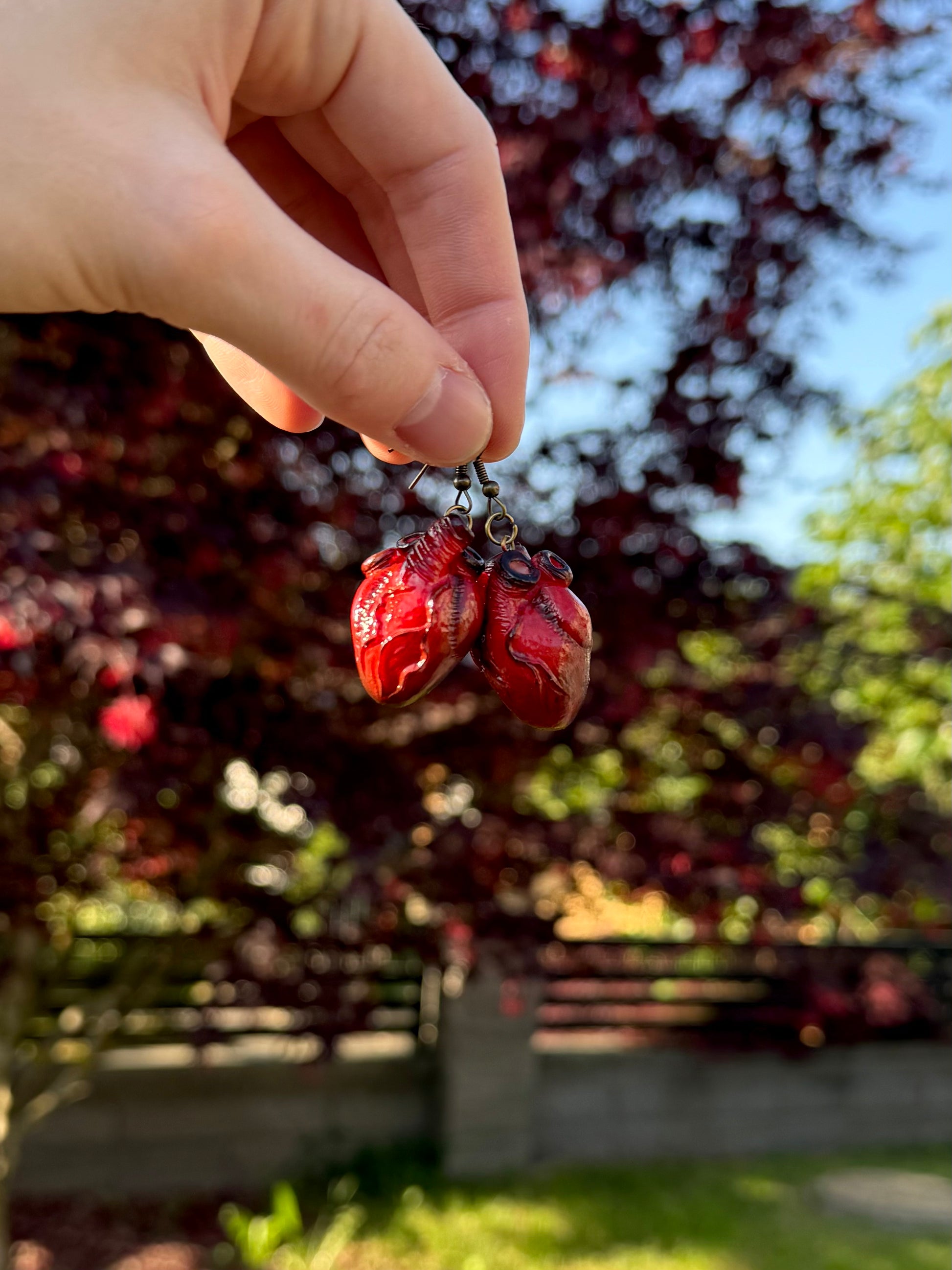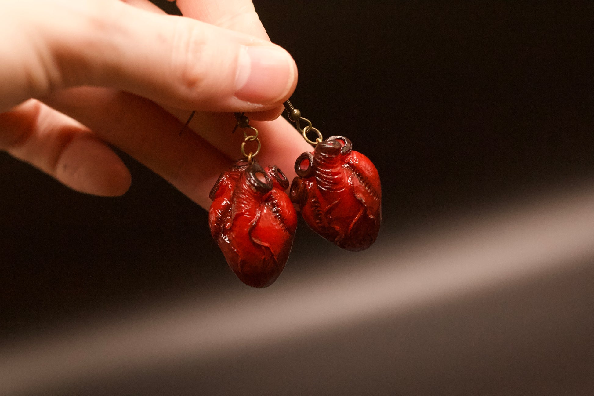 Spooky and hauntingly beautiful heart earrings. Fully handmade with polymer clay, covered with acrylic paints and varnish.